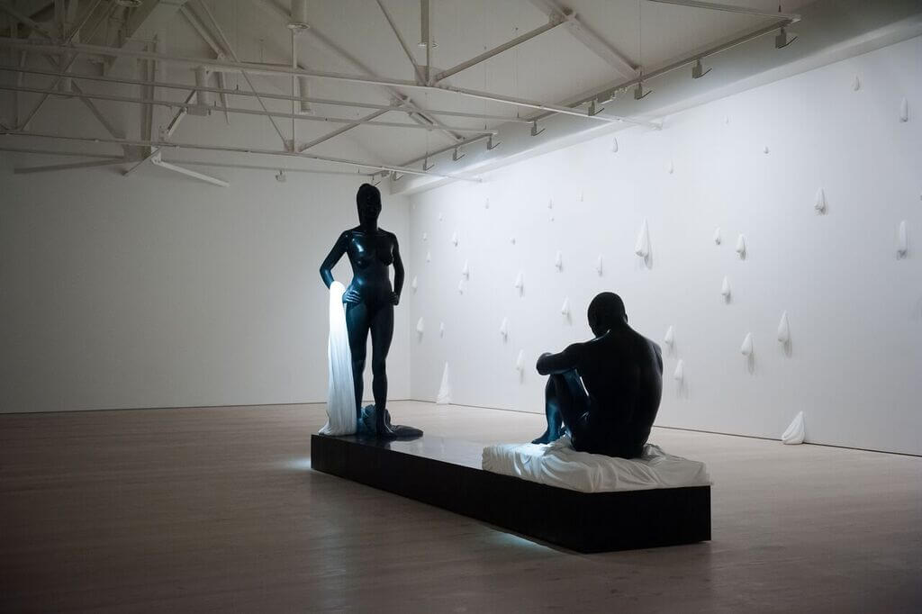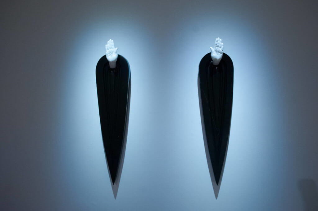 The exhibition was held in five rooms, where, in addition to a few laconic paintings, you could find sculptures made of white and black Belgian marble and black granite.
